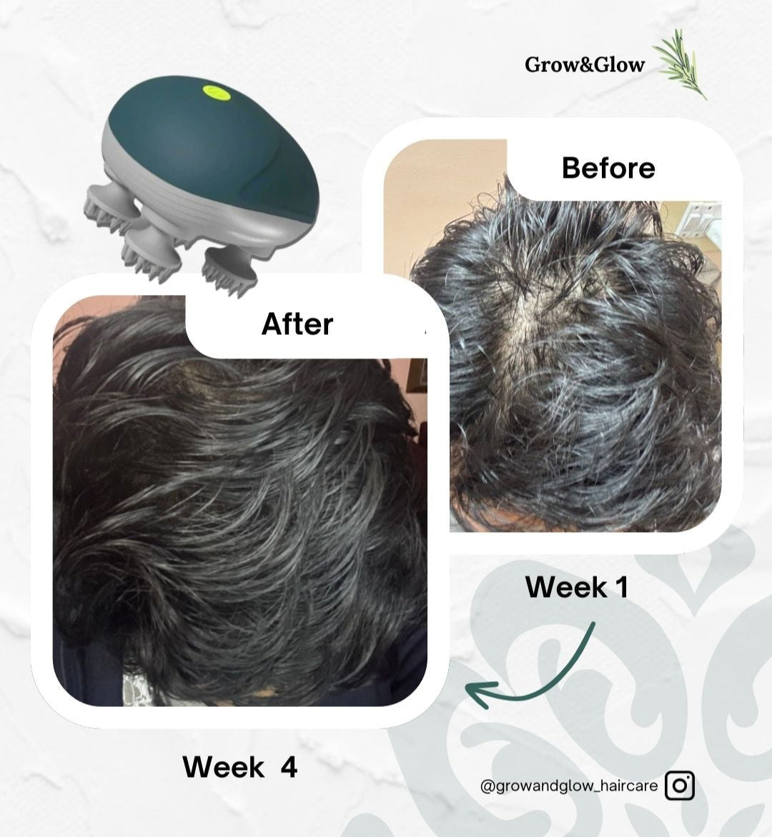 Combat hair loss while indulging in relaxation with the Grow & Glow Scalp Massager. Its four soft silicone massage heads work together to stimulate blood circulation and revitalize your scalp—supporting healthier, stronger hair growth.